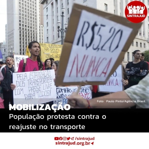 O mês de janeiro foi marcado com o aumento das tarifas do transporte público em São Paulo, e em outras seis capitais: Belo Horizonte, Florianópolis, Natal, Recife, Rio de Janeiro e Salvador. Para a população da maior cidade do país a tarifa dos trens e metrôs aumentou de R$5,00 para R$5,20 e os ônibus municipais de R$4,40 para R$5,00. Em São Paulo, o primeiro ato desta semana foi na terça-feira (14), convocado pelo bloco autônomo das entidades estudantis. E nesta quinta-feira (16) o movimento Passe Livre organiza mais um protesto a partir das 17h, com concentração em frente ao Teatro Municipal. Com os reajustes, o valor da passagem na cidade de São Paulo, para quem utiliza ônibus municipal e trem ou metrô, cosiderando o desconto da integração, é de R$8,90 cada trajeto, somando a ida e a volta, são R$17,80 por dia. Para quem utiliza o transporte cinco vezes por semana, o valor semanal é equivalente a R$89,00 e cerca de R$391,60 por mês, considerando 22 dias de utilização. A maior reclamação dos usuários dos sistemas de transporte é que a passagem aumenta, mas a qualidade do serviço não. Por isso o movimento convoca o povo às ruas contra esses reajustes e pela tarifa zero todos os dias, não só em um período durante os domingos. O Sintrajud apoia essa mobilização e se soma aos protestos contra os reajustes e pela tarifa zero! Serviço:Ato contra o aumento da tarifaConcentração: 17hOnde: Teatro Municipal de São PauloOrganização: movimento Passe Livre