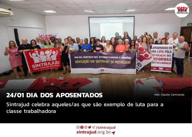 Hoje, 24 de janeiro, é o dia das pessoas aposentadas, data importante no calendário do Sintrajud, pois celebra quem se aposentou do trabalho, mas continua ativo na luta pelos direitos de todos os trabalhadores. A data foi escolhida por conta da criação da Previdência Social, em 24/01/1923.