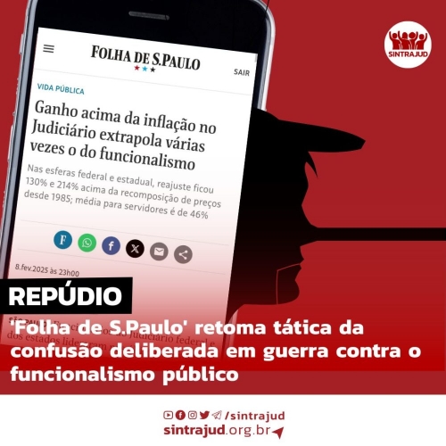 Em meio à era das fake news, o jornal 'Folha de S.Paulo' produziu no último sábado (8 de fevereiro) mais uma reportagem deliberadamente distorcida com o objetivo de atacar servidores e serviços públicos. Elencamos abaixo os dez principais esclarecimentos à sociedade brasileira que se fazem necessários.1 - A mistura de vencimentos de juízes e desembargadores com os de funcionários técnicos e analistas para calcular uma "média" salarial do Poder Judiciário não é confusão. É parte de um projeto de criminalização do funcionalismo para engajar sociedade na defesa das privatizações indiscriminadas. Nem mesmo após a pandemia de Covid-19, que evidenciou a importância do servidor público de carreira para o impedimento e/ou denúncia de irregularidades, apadrinhamentos e negativa de direitos, a 'Folha' mudou sua postura de ataques permanentes ao funcionalismo. Assim poupando as cúpulas dos Poderes e defendendo a política de ajustes fiscais que beneficiam banqueiros e empresas como as do sistema de mídia, contempladas por isenções fiscais que saem do orçamento que deveria assegurar direitos.2 - Essa narrativa da média de banana divida por abacaxi é também uma forma de acobertar os penduricalhos autoconcedidos por juízes, desembargadores e ministros, jogando na confusão de que todo mundo participa da farra denunciada cotidianamente pelas entidades representativas de servidores em todo o país. Não à toa, outro grande veículo de mídia, o jornal 'Valor Econômico', abriu espaço ao ministro do STF Flávio Dino para jogar água no moinho da confusão de que o Judiciário aumentaria salários de servidores.3 - Os vencimentos de servidores do Judiciário são decididos por meio de leis aprovadas no Congresso Nacional, que sistematicamente tem aprovado barreiras à recomposição salarial por meio do arcabouço fiscal. Já a magistratura tem se autoconcedido uma série de benefícios à margem da legislação, incluindo a retomada do Adicional por Tempo de Serviço (ATS), explicitamente vedado na Constituição Federal.4 - Após sete anos de congelamento nos governos de Jair Bolsonaro e Michel Temer, os servidores públicos não vêm tendo respeitada a disposição constitucional da data-base (direito de qualquer trabalhador), inclusive com anuência do Supremo Tribunal Federal, que relativizou o direito em prol do "ajuste" fiscal. A terceira parcela de uma reposição parcial de perdas salariais conquistada em 2023, e integralizada neste mês de fevereiro, nos coloca novamente sem perspectiva de quando nossos salários serão adequados, frente a uma inflação que é sentida por toda a população trabalhadora.5 - A referência temporal escolhida na matéria é outra distorção absurda. Em 1985 tivemos um ano de hiperinflação. Os servidores do Judiciário Federal sequer tinham carreira reconhecida e recebiam vencimentos básicos em muitos casos abaixo do salário mínimo da época (o que exigia complementação para adequar a remuneração da pessoa à legislação). A intencional distorção revela que o que a Folha realmente defende é que quem arrecada milhões passe fome.6 - Os servidores são os responsáveis pela efetivação do combate a crimes federais, arrecadação e persecução penal, muitas vezes se expondo a riscos que os juízes não se expõem em seus gabinetes. É o caso dos oficiais de justiça, muitas vezes vitimados pela violência no exercício funcional, inclusive com mortes. Mas são os magistrados que recebem adicional de produtividade.7 - Em diversos tribunais, enquanto se autoconcederam benefícios e penduricalhos "legalizados" por decisões administrativas ou judiciais, a mesma magistratura vem determinando o corte de parcelas salariais dos servidores. Caso do TRT-2, que promoveu um corte de 25% do auxílio-saúde em 2024, um mês após alguns juízes receberem até 130 mil reais. Em dezembro do ano passado, juízes e promotores se presentearam com penduricalhos da ordem de até R$ 1 milhão de reais. Nada disso foi pago aos servidores.8 - É necessário denunciar a apropriação orçamentária que a magistratura tem feito ao arrepio da legislação. O Sintrajud e a Fenajufe fazem isso permanentemente.9 - A sobrecarga de trabalho crescente tem derivado em adoecimento e transtornos que muitas vezes são negligenciados pelas administrações devido à subserviência à lógica do ajuste fiscal.10 - Um jornalismo que se afirma "a serviço do Brasil" não pode produzir deliberadamente fake news para defender seus princípios editoriais ultraliberais.São Paulo, 10 de fevereiro de 2025.Diretoria Executiva do Sintrajud
