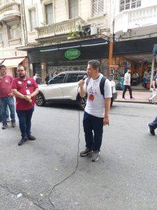 Diretor Marcos Trombeta (oficial de justiça/JF) fez fala de apoio as colegas do MP-SP. Foto: Arquivo Sintrajud