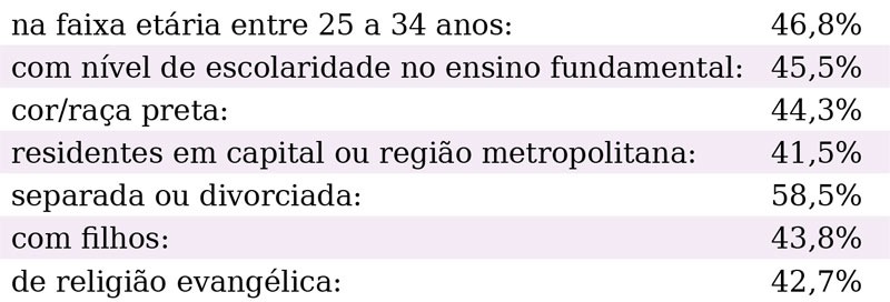 Violências sofridas pelas mulheres nos últimos 12 mesesNo Brasil, 21,4 milhões de mulheres foram vítimas de violência no último ano, um percentual de 37,5%. Deste total, classificando por tipo de agressão, os números são: