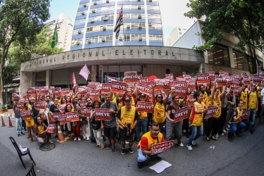 Após a manifestação, uma comissão de grevistas ainda foi até o Hotel Radisson Paulista Plaza, na Alameda Santos. No local acontecia a reunião do Colégio de Presidentes dos TREs de todo o país, com a participação dos diretores gerais — que se posicionaram favoravelmente à terceirização para substituir servidores requisitados que estão sendo dispensados da Justiça Eleitoral para retornarem a seus órgãos de origem.A medida coloca em risco o próprio funcionamento dos TREs e cartórios eleitorais, e ameaça a organização das próximas eleições e a segurança do maior banco de dados pessoais do país. Só em São Paulo, a Justiça Eleitoral perderá mais de mil servidores com experiência construída em alguns casos há mais de 20 anos. Abaixo-assinado contra a terceirização e em defesa dos requisitados movido pelo Sintrajud colheu cerca de 4.700 assinaturas e uma petição assinada por juízes, chefes e assistentes de cartório somou mais de 700 subscrições.O Sintrajud defende a permanência dos servidores/as requisitados/as, a nomeação imediata de todos os aprovados em concursos públicos e a criação de novos cargos para suprir o déficit crônico de servidores na Justiça Eleitoral. Além de repudiar a terceirização e qualquer forma de precarização do serviço público.