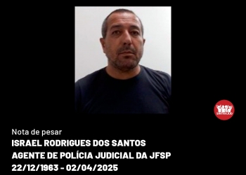 A diretoria e funcionários do Sintrajud manifestam condolências à família e aos amigos do colega Israel Rodrigues dos Santos (foto), agente da polícia judicial da Justiça Federal em São Paulo, que faleceu neste dia 02 de abril, vítima de câncer.Com 61 anos de idade, Israel serviu ao Judiciário Federal em diversas cidades. Avaré, na capital, em Guarulhos, Osasco. E mais recentemente estava lotado na subseção de Guaratinguetá. Participou de lutas e mobilizações da categoria e se manteve filiado ao Sindicato até o momento de sua morte.Também agente e ex-diretor do Sindicato, o servidor do Tribunal Regional Federal da 3ª Região Cláudio Klein prestou homenagem ao colega. “Conheci Israel através do Sindicato e de nossas campanhas salariais passadas. Ano passado voltei a encontrá-lo, em Guaratinguetá, e contou-me de suas andanças por vários fóruns da Justiça Federal no interior. Conhecia muito a dinâmica de nossas atividades e observava como as coisas mudavam rapidamente, nem sempre favoráveis aos servidores. Israel sempre foi uma daquelas peças importantes da engrenagem de nossa instituição. Como a maioria de nós. Aquelas peças que as vezes não são lembradas ou reconhecidas, mas quando faltam deixam lacunas e nem sempre podem ser substituídas.E vamos sentir falta”, afirmou.O colega Paulo Maia, da subseção de Avaré, afirmou à reportagem que "Israel foi um amigo muito querido de todos aqui em Avaré onde esteve lotado, antes de se mudar para Guaratinguetá. Sempre muito alegre, comunicativo, educação impar. Excelente profissional, causou muita tristeza em todos os servidores da nossa subseção [sua morte]. Que Deus conforte os familiares pela perda de uma pessoa tão querida e amiga de todos."NOTA DA REDAÇÃO: O texto foi editado em 07 de maio para inclusão de declaração do colega Paulo Maia.
