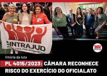 O texto torna crimes qualificados os cometidos contra oficiais de justiça, defensores e advogados públicos, juízes, promotores, integrantes do sistema prisional e da Força Nacional, membros da Advocacia-Geral da União (AGU) e procuradores estaduais e do Distrito Federal, no exercício da função ou em decorrência dela. Se sancionada, a qualificadora alcançará ainda cônjuges e familiares destes servidores até o terceiro grau de parentesco que sejam também vítimas de lesão corporal, homicídio ou tentativas. Também fica estabelecida a confidencialidade de dados pessoais e de familiares indicados pelo servidor, e as possibilidades de garantia de escolta, coletes balísticos, veículos blindados ou direito ao trabalho remoto para auxiliar na proteção das carreiras alcançadas. As penas são aumentadas de um a dois terços e os crimes cometidos contra esses servidores passa a ser tipificados como hediondos. O texto vai à sanção presidencial e, quando receber o documento, a Presidência da República tem 15 dias úteis para tornar lei a propositura, com ou sem vetos. O Sintrajud participou ativamente da luta pela aprovação do PL 4015/2023 e continuará acompanhando a questão até a sanção e efetivação da lei nos tribunais de São Paulo.