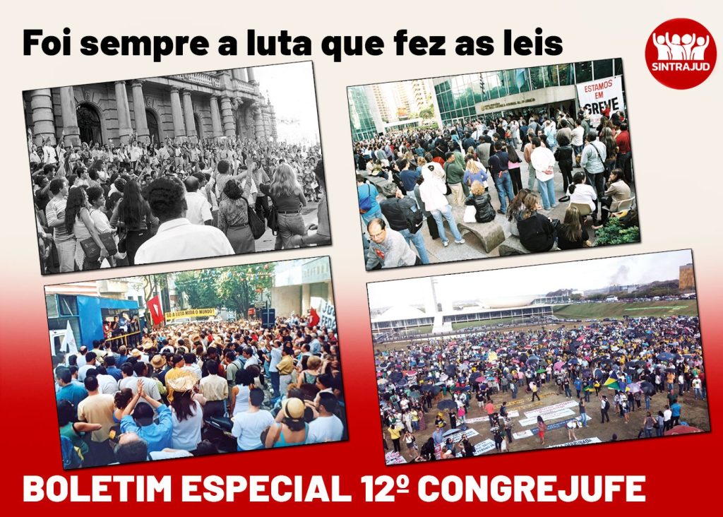Leia também:Boletim especial: 12° Congrejufe precisa construir greve por carreira, salário, saúde e direitosEspecial 12º Congrejufe: Chega de enganação! Negocia, Barroso!12º Congrejufe: É hora de ir à greve!Manifesto do Coletivo LutaFenajufe: “Somente a luta da categoria vai combater retrocessos e conquistar vitórias!” Assista à live do LutaFenajufe rumo ao 12º Congressohttps://www.youtube.com/live/hX38DbeXFBw