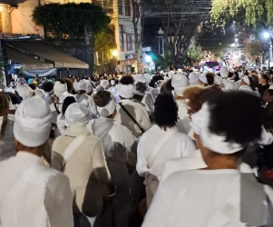 Cortejo afro Ilú Obá De Min promoveu neste dia 13 de maio de 2025, pelo 19º ano, a lavagem das escadarias do bairro do Bixiga, na região central de São Paulo, denunciando a mentira da abolição (Foto: Arquivo Sintrajud).