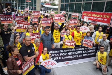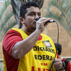 “A gente precisa fazer uma grande mobilização, rumo a uma greve geral, porque só isso vai fazer o STF abrir negociação efetivamente”, Marcos Trombeta, oficial de justiça lotado na CEUNI e diretor do Sintrajud