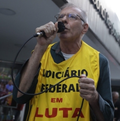 "Foi depositada por parte da categoria uma esperança no Fórum de Carreira do CNJ que não vai nos entregar nada se a gente não tiver uma correlação de forças. Coincidentemente, sempre que a gente chama um processo de mobilização, surge nos grupos de WhatsApp alguma coisa para dizer 'está acontecendo isso aqui'. Essa semana foi o golpe do AQ. Porque eles não estão propondo que os tribunais e conselhos superiores discutam a proposta que saiu daquele Fórum, reunião atrás de reunião - eu inclusive participei de várias, sempre denunciando que não estava ali a nossa solução - e sim uma outra proposta, baseada na CJ, querendo angariar o nosso apoio para a valorização de CJ. E não é só isso que querem, querm trazer CJs extraquadro, lotar os tribunais de CJ extraquadro, e por isso querem valorizar a CJ". Fabiano dos Santos, servidor do TRT-2, ex-diretor da Fenajufe e atualmente na direção da CSP-Conlutas, central sindical à qual o Sintrajud é filiado.