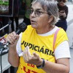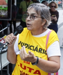 Também diretora do Sintrajud e aposentada do TRE-SP, Rosana Nanartonis, destacou: ‘Conversem com seus colegas. Vamos brigar pelo nosso Plano de Cargos e Salários. Sem luta a gente não vai conseguir. Como eu disse, eu sou aposentada. E todos os nossos planos de cargos e salários, a gente só está aqui hoje por causa de greves, por causa da luta e da união”.