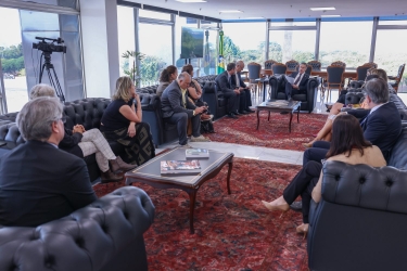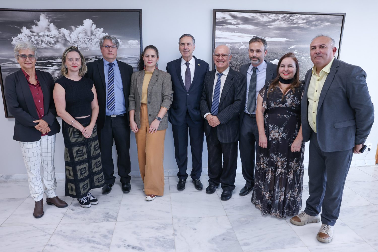 A direção do Sintrajud e dirigentes de alguns sindicatos acabam de se reunir com o presidente do Supremo Tribunal Federal e do Conselho Nacional de Justiça, ministro Luís Roberto Barroso, na tarde desta quinta-feira (05 de junho). Participaram da reunião pelo Sindicato os dirigentes Antônio Melquíades (o Melqui), Isabella Leal e Camila Oliveira; o dirigente da CSP-Conlutas Fabiano dos Santos; os dirigentes do Sitraemg e da Fenajufe Alexandre Magnus, David Landau e Eliana Leocádia. Além da coordenadora-geral a Federação eleita pelo Coletivo Luta Fenajufe Denise Carneiro, que é dirigente do Sindicato da Bahia. O diretor-geral do STF, Eduardo Toledo, também participou da reunião.