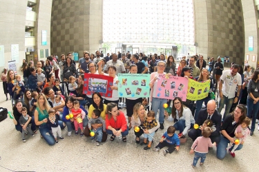Em setembro de 2019, mães, pais e filhos em luta pela manutenção da creche do TRT-2. Foto: Joca Duarte