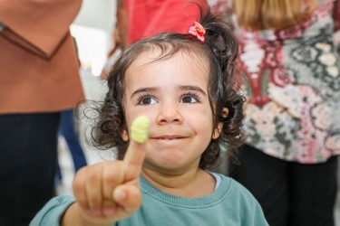 Yolanda, filha do servidor Eduardo Galindo, durante comemoração dos 35 anos da creche do TRT-2. Foto: Sergio Moura/Secom TRT-2