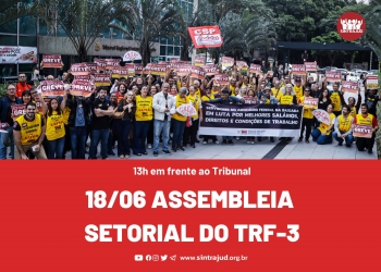 TRF-3 tem assembleia setorial presencial neste dia 18 de junho para debater greve por carreira, salário, saúde e direitos