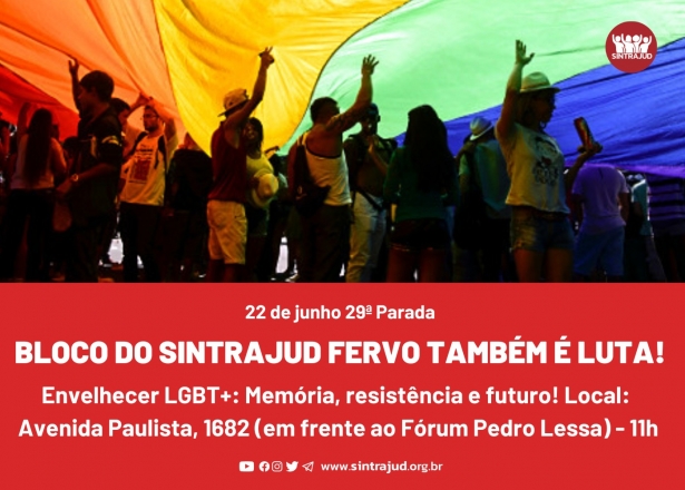 Sintrajud convida categoria à 29ª Parada LGBT+, neste dia 22, e criação do Núcleo do segmento
