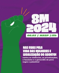 O 8 de março marca o início do calendário anual de lutas sociais. Mulheres e homens do Sintrajud estão convocados para participar do 8M unificado, que tem como tema “Nas ruas pela vida das mulheres e legalização do aborto — a luta contra as violências, as privatizações, o fascismo e o genocídio negro e palestino”.