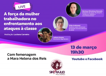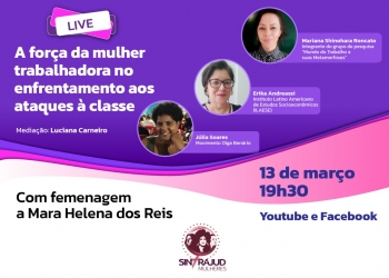 Live no dia 13 aborda força da mulher trabalhadora no enfrentamento aos ataques à classe
