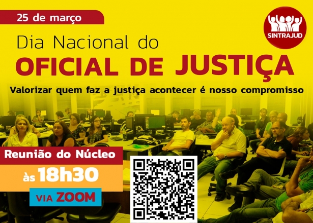 Sintrajud parabeniza as colegas oficialas e os colegas oficiais de justiça;Núcleo terá início às 18h30, via Zoom.