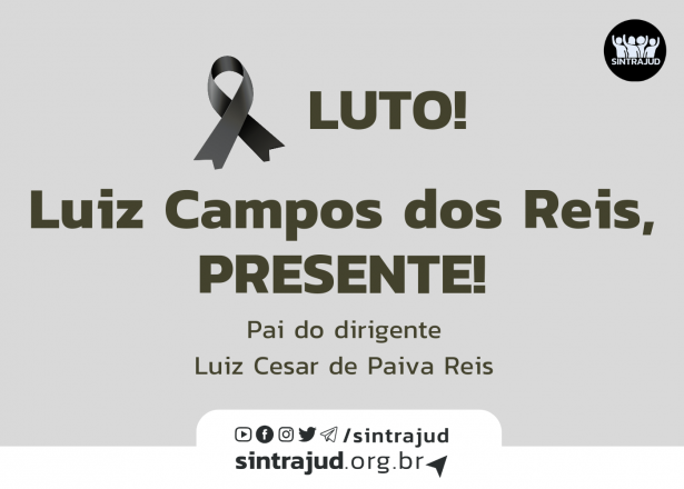 Faleceu na madrugada deste sábado (30 de março), aos 97 anos de idade, o senhor Luiz Campos dos Reis, pai do dirigente do Sintrajud Luiz César Paiva dos Reis, que é servidor da Justiça Federal lotado em Caraguatatuba.
