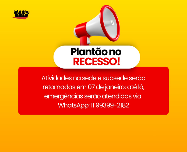 Durante o recesso judiciário (20 de dezembro a 06 de janeiro) as atividades permanecerão suspensas na sede e na subsede do Sindicato. Mas, como todos os anos, será mantido um plantão telefônico para demandas emergenciais – especialmente necessidades relativas ao convênio com a Claro (bloqueio e recuperação de linhas em decorrência de perda ou roubo/furto) – ou outros assuntos que requeiram atenção imediata. O diretor responsável pelo plantão é o servidor do TRF-3 Cléber Borges Aguiar, que receberá mensagens pelo número (11) 99399-2182.