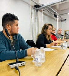 Diretor e diretora do Sintrajud, representante da Fenajufe e colega técnico à mesa. Foto: Sintrajud