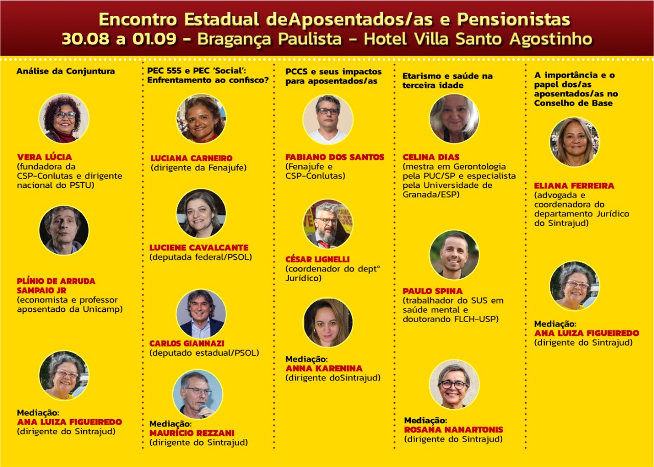 Confira abaixo os debates que acontecerão no Encontro. A saída da portaria do Sindicato acontece no dia 30 às 14h e o retorno, no dia 1° de setembro às 18h.