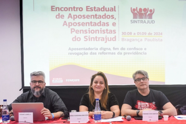 No sábado à tarde (31 de agosto), o Encontro de Aposentados, Aposentadas e Pensionistas do Sintrajud debateu a proposta de reestruturação da carreira formulada pela categoria e apresentada pela federação à cúpula do Judiciário em dezembro do ano passado. O dirigente da Fenajufe Fabiano dos Santos e o advogado e coordenador do deptº Jurídico do Sindicato, César Lignelli, apresentaram aos participantes as vantagens da proposta num cenário de perdas de direitos consolidado pela 'reformas' administrativa de 1998 (no governo Fernando Henrique Cardoso) e da Previdência promovidas pelos governo FHC, Lula, Dilma e Bolsonaro e o teto de gastos imposto no governo Michel Temer e o arcabouço fiscal implantado na gestão atual. A diretora do Sindicato Anna Karenina coordenou os trabalhos.