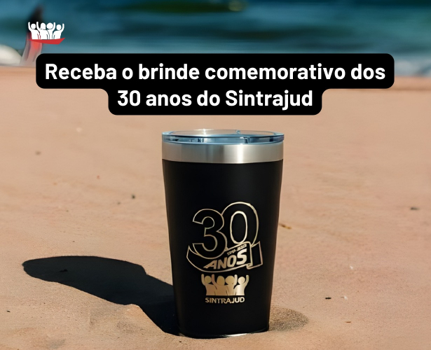 O Sintrajud está entregando um brinde especial em comemoração aos 30 anos do sindicato: um copo térmico, preparado como forma de reconhecimento e valorização da categoria. Para garantir o recebimento do brinde pelos Correios, é necessário o preenchimento do formulário (AQUI).