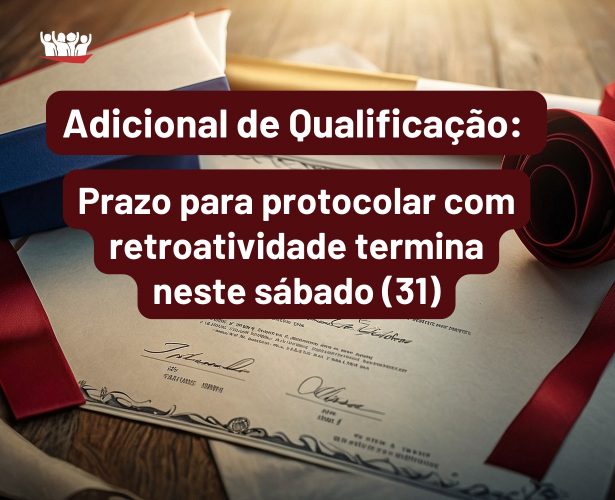Termina neste sábado (31) o exíguo prazo para protocolar diplomas e certificações requerendo que sejam aplicadas para o Adicional de Qualificação com efeitos retroativos a 1o de janeiro de 2026.