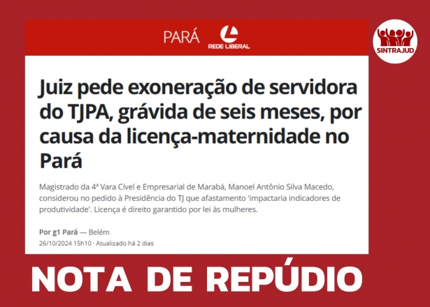 O Sindicato repudia veementemente a postura misógina e autoritária do juiz Manoel Antônio Silva Macedo, magistrado da 4ª Vara Cível e Empresarial de Marabá (PA), que solicitou a exoneração de uma servidora em razão de sua licença-maternidade, sob a justificativa de que o afastamento impactaria os indicadores de produtividade da Vara. Tal postura representa uma flagrante violação dos direitos à maternidade e à dignidade humana. Trata-se ainda de violência, expressa na conduta sexista, machista, misógina e discriminatória; práticas que não podem passar impunes. Exigimos a investigação a rigor.