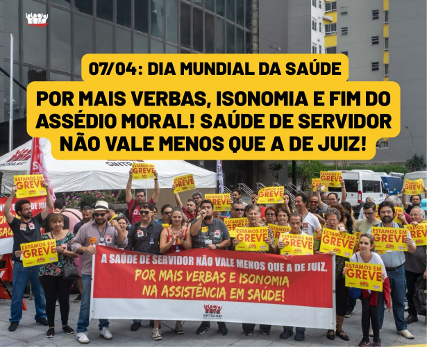 07/4: Dia Mundial da Saúde: por mais verbas, isonomia e fim do assédio moral! Saúde de servidor não vale menos que a de juiz!