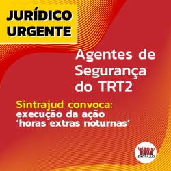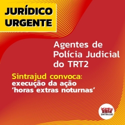 Sintrajud convoca para execução das horas extras noturnas dos agentes de polícia judicial do TRT-2