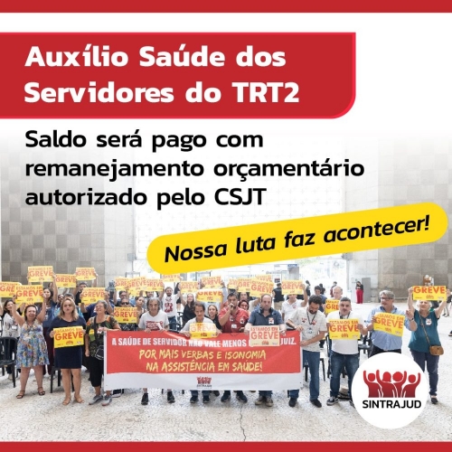 Relembre a luta do Sintrajud pela equidade do pagamento do auxílio saúde aos servidores do TRT-2 em textos publicados anteriormente: