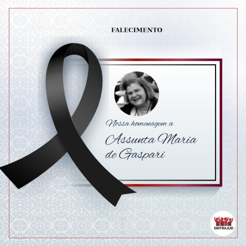 A Diretoria do Sintrajud lamenta a morte da servidora aposentada Assunta Maria de Gaspari, que faleceu na quinta-feira (19), aos 63 anos