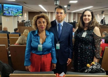 Maria Ires Graciano Lacerda, Marcos Trombeta e Ana Silvia Poço, dirigentes do Sintrajud na sessão do TCU