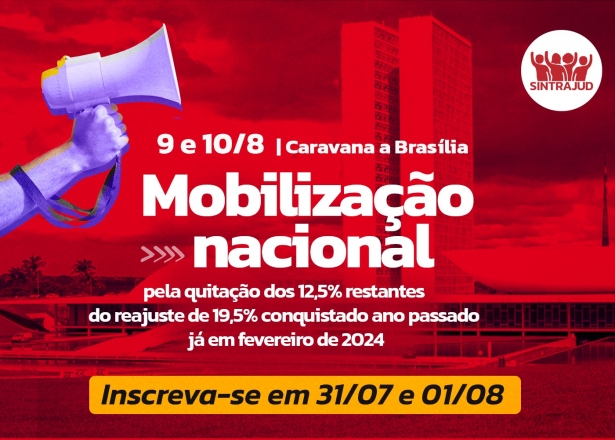 Como parte das atividades, a Fenajufe convoca ações em Brasília, entre os dias 8 (com a presença dos diretores plantonistas) a 10 de agosto, e nos estados. O Sintrajud, que estará em processo eleitoral para escolha da diretoria executiva e conselho fiscal que estarão à frente da entidade até 2026, se soma às ações nos dias 9 e 10 com uma representação de cinco servidores e/ou servidoras, além de dirigentes. Interessados devem se inscrever nos dias 31 de julho e 1º de agosto, por meio do formulário abaixo. A caravana sairá de São Paulo de avião na manhã do dia 9 e retornará no dia 10 à noite.