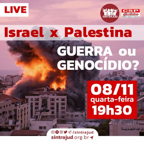 Sintrajud realiza live sobre o conflito entre Israel e Palestina nesta quarta, 8 de novembro