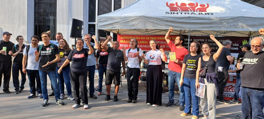 Funcionalismo federal, estadual e municipal realizou ato durante greve unificada do Metrô, Sabesp e CPTM, no dia 3 de outubro, em frente ao Fórum Pedro Lessa. Foto: Arquivo Sintrajud