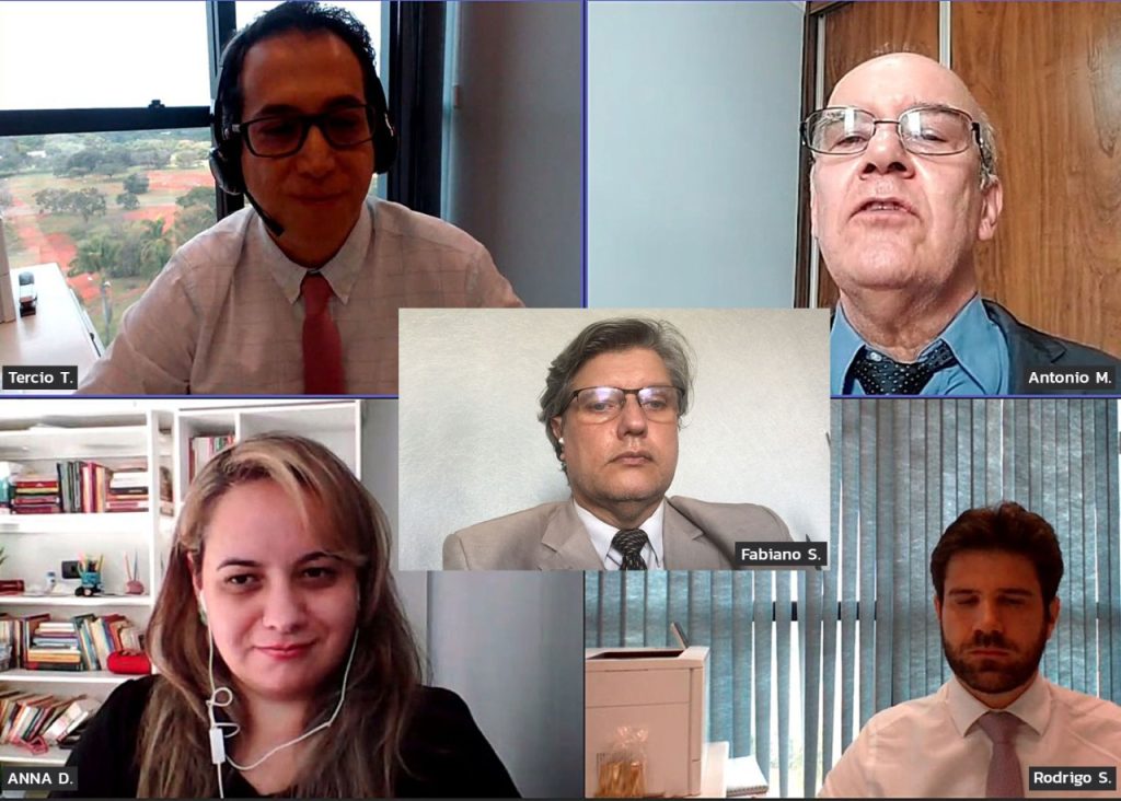 Os dirigentes do Sindicato Anna Karenina, Antônio Melquíades e Fabiano dos Santos se reuniram por videoconferência, na quinta-feira (10), com Rodrigo Sorrenti Hauer, chefe de gabinete do ministro do Supremo Tribunal Federal André Mendonça, e Tércio Issami Tokano, assessor do gabinete (foto).