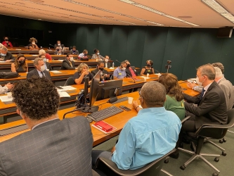 Fabiano dos Santos (de terno bege), diretor do Sintrajud e da Fenajufe, durante a plenária da Frente Parlamentar (Foto: ASCOM Fenajufe)