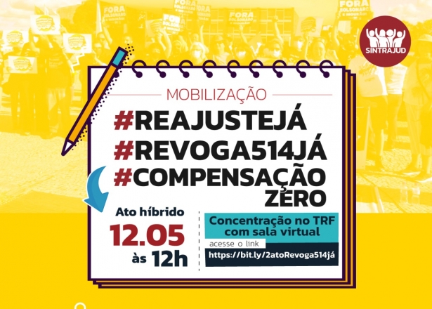 Dando continuidade a luta pela revogação da Resolução 514/2022, servidores e servidoras da Justiça Federal na 3ª Região realizam novo ato em frente ao TRF-3 nesta quinta-feira, 12 de maio, a partir do meio-dia. O protesto acontece de forma híbrida, para garantir a participação dos colegas do interior e que moram em outros estados.