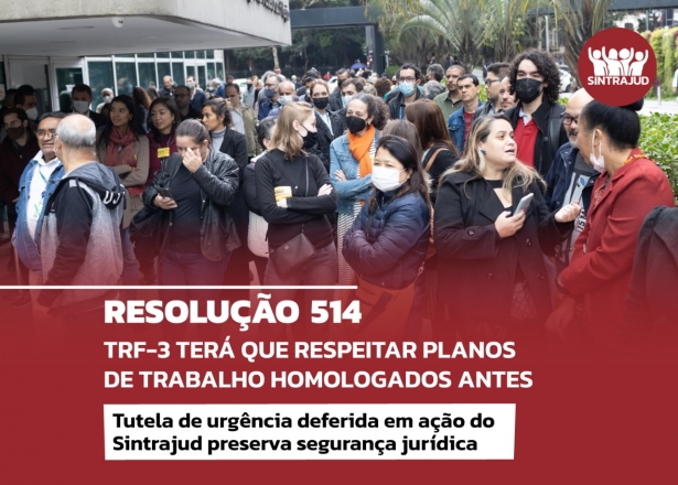 Foi concedida nesta terça-feira, 30 de agosto, tutela de urgência em ação judicial movida pelo Sintrajud para assegurar o respeito aos planos de trabalho já homologados com base na Resolução PRES TRF-3 370/2020, suspendendo no particular os efeitos das Resoluções 514/2022 e 530/2022 do Tribunal. A ação judicial foi decidida em assembleia com os servidores e servidoras da Terceira Região no estado, como reação à intransigência da gestão Marisa Santos, que cancelou unilateralmente os planos de teletrabalho anteriores ao novo regulamento, em prejuízo à segurança jurídica e à estabilidade das relações, com a imposição de grandes prejuízos a parcela da categoria.