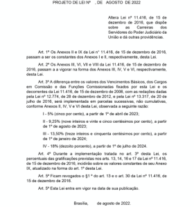 O projeto de lei com a recomposição parcial das perdas salariais dos servidores e servidoras do Judiciário Federal deverá ser encaminhado pelo STF ao Congresso Nacional entre os dias 5 e 9 de setembro de 2022. E sem alterações em relação ao aprovado na sessão administrativa do órgão.