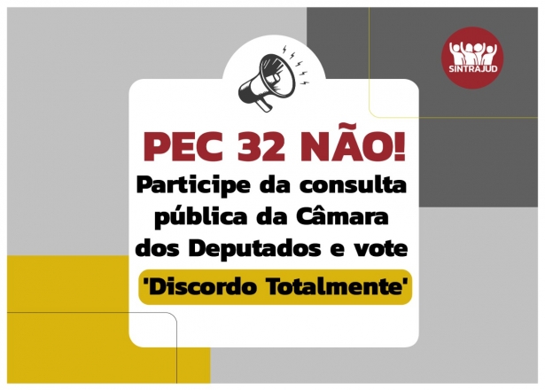 Sintrajud faz chamado público para votação na consulta da Câmara sobre a PEC 32
