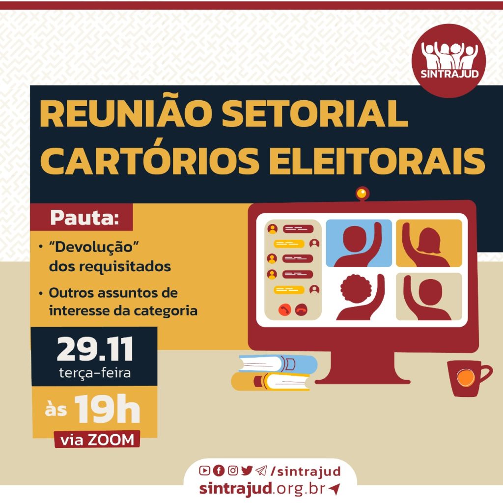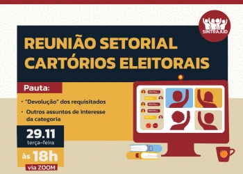 O estrangulamento de recursos humanos na Justiça Eleitoral estará em pauta na próxima terça, 29 de novembro, quando haverá reunião setorial com os cartórios eleitorais para discutir a ‘devolução’ de servidores requisitados. A reunião convocada pelo Sintrajud será a partir das 19h na plataforma Zoom.