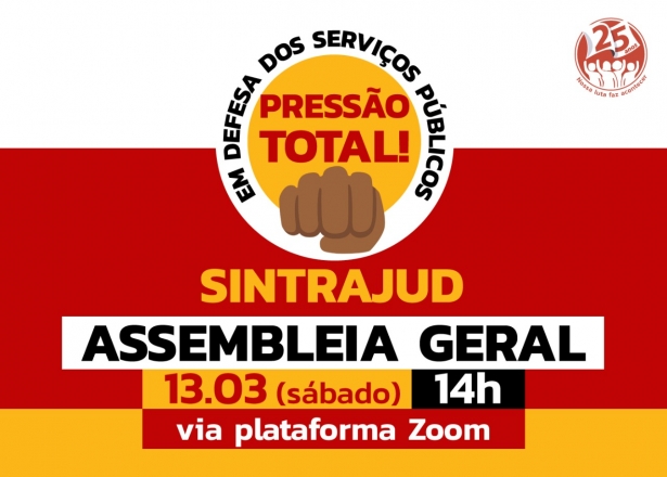 Também serão pauta da assembleia as dificuldades do trabalho na pandemia e a continuidade da luta para preservar a saúde e as vidas dos servidores, mantendo a prestação de serviço à distância enquanto não houver vacinação para todos e a transmissão do novo coronavírus não for efetivamente controlada. Assim como o combate ao assédio moral, que vem sendo denunciado por servidores como prática que se tornou corriqueira também no teletrabalho, com exigência de metas absurdas e determinações de chefias ou juízes que extrapolam as normativas dos tribunais.