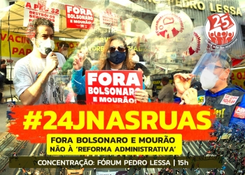 A população volta às ruas neste sábado, 24 de julho, para mais uma jornada de protestos pelo “Fora Bolsonaro e Mourão”, por mais rapidez na vacinação e por um auxílio emergencial de R$ 600 até o fim da pandemia. Os protestos também devem fazer a defesa dos serviços públicos, repudiar as privatizações e denunciar o genocídio dos povos indígenas, além da violência contra a população negra, as mulheres e os grupos LGBTQIA+.