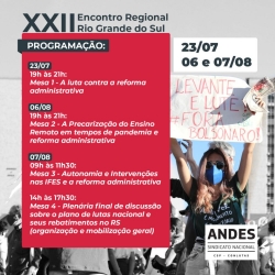 O diretor do Sintrajud Fabiano dos Santos participa nesta sexta-feira, 23 de julho, da abertura do 22º Encontro Regional da seção gaúcha do Andes-SN (Sindicato Nacional dos Docentes das Instituições de Ensino Superior).