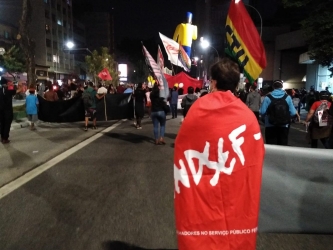 Em Santos, a subsede do Sintrajud participou do ato realizado na Praça da Independência, com entidades que também integram a Frente Sindical Classista, além de outros movimentos e organizações.