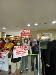 "Procuramos todos os deputados que ainda se declaram indecisos e até alguns que votaram a favor na CCJ ou na Comissão Especial, para ressaltar que essa reforma é a destruição dos serviços públicos. E nos surpreendemos que alguns deputados que sempre votam contra nós estão mudando de posição devido à pressão que têm recebido. Por isso é muito importante manter e intensificar essa pressão", avalia Luciana Carneiro.
