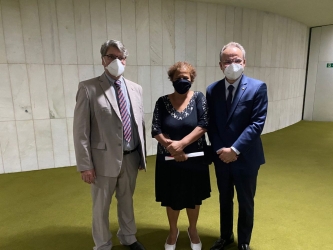 Fabiano dos Santos e Maria Helena Leal se reuniram com o deputado Samuel Moreira (PSDB-SP).